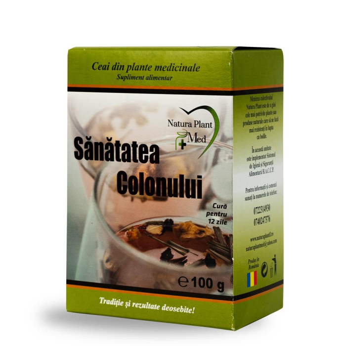 Descriere Conține: 100 gr. Beneficii și utilizări Ceaiul este recomandat pentru: Eliminarea disconfortului intestinal. Susținerea bunei funcționări a tractului digestiv. Acțiuni antidiareice, antispastice și carminative (eliminarea gazelor intestinale). Compoziție Acest produs combină plante medicinale tradiționale, dozate optim: Ghintura rădăcini (Gentiana asclepiadea) – 15% Anghinare frunze (Cynara scolymus) – 15% Mentă frunze (Mentha piperita) – 15% Sunătoare părți aeriene (Hypericum perforatum) – 15% Trei-frați-pătați părți aeriene (Centaurium erythraea) – 10% Mușețel flori (Matricaria chamomilla) – 10% Crușin scoarță (Frangula alnus) – 10% Tei flori (Tilia platyphyllos) – 10% Mod de preparare Adăugați o lingură mare de plante în 500 ml de apă fierbinte. Acoperiți, fierbeți timp de un minut, apoi lăsați la infuzat 10 minute. Strecurați înainte de consum. Mod de administrare Consumați 150 ml ceai neîndulcit, cu 10-15 minute înainte de masă. Se poate asocia cu Tinctura de Obligeană – o lingură diluată în 150 ml de ceai. Precauții Contraindicat femeilor însărcinate, celor care alăptează și copiilor sub 18 ani. Nu depășiți doza recomandată pentru consumul zilnic. Contraindicații La doza zilnică recomandată, nu s-au semnalat contraindicații. Atenționări Evitați utilizarea dacă aveți alergie la oricare dintre componentele produsului. A nu se lăsa la îndemâna și vederea copiilor mici. Suplimentele alimentare nu înlocuiesc un regim variat și echilibrat și un stil de viață sănătos. Condiții de păstrare A se păstra într-un loc uscat și ferit de razele directe ale soarelui. Termen de valabilitate: conform indicațiilor de pe ambalaj.