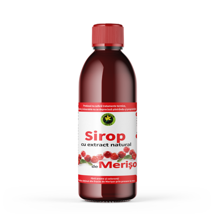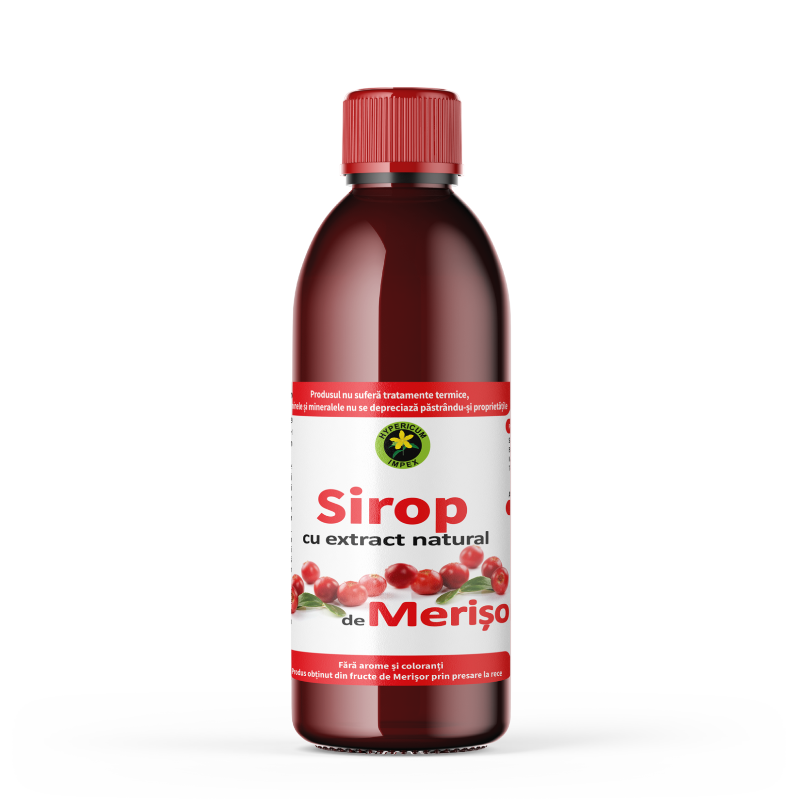 Produsul Sirop de Merisor cu zahar, contribuie la intarirea imunitatii datorita continutului de vitamina C si este util in curele de slabire prin stimularea procesului natural de slabire.